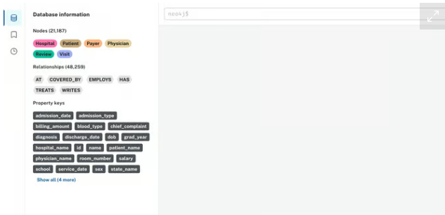 참고 : 이 가짜 병원 시스템 데이터에는 기업 환경에서 일반적으로 볼 수 있는 것보다 상대적으로 적은 수의 노드와 관계가 있습니다. 그러나 실제 병원 시스템에 얼마나 많은 노드와 관계를 추가할 수 있는지 쉽게 상상할 수 있습니다. 예를 들어 간호사, 약사, 약국, 처방약, 수술, 환자 친척 및 더 많은 병원 엔터티가 노드로 표시될 수 있습니다.
