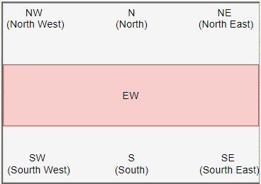 | W | 서쪽 또는 왼쪽 중앙 |